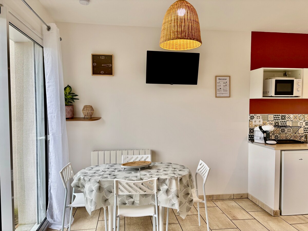 Esta habitación de huéspedes situada en la dependencia de una casa con encanto en el campo de Sarthoise le seducirá por su tranquilidad, vegetación y autenticidad. Terraza privada para los huéspedes y estacionamiento seguro en nuestro patio. Usted tiene a su disposición mesas y tumbonas para disfrutar del sol ☀️ La habitación incluye su cuarto de baño privado, nevera, microondas, cafetera, hervidor de agua, televisión y wifi