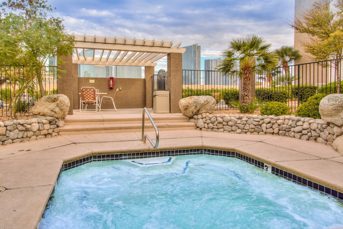 Condominio remodelado de 1 dormitorio a menos de una milla de Las Vegas Strip en una comunidad segura y cerrada. Disfruta de piscinas, jacuzzis, gimnasio, ESTACIONAMIENTO GRATUITO Y SIN TARIFAS DEL RESORT. Interior completamente remodelado, cocina completa, cafetera Keurig y café. Wifi rápido, TV inteligente con Netflix y YouTubeTV para canales locales y deportes, y un cómodo espacio para vivir. Perfecto para ocio, conciertos, viajes de negocios y estancias prolongadas.