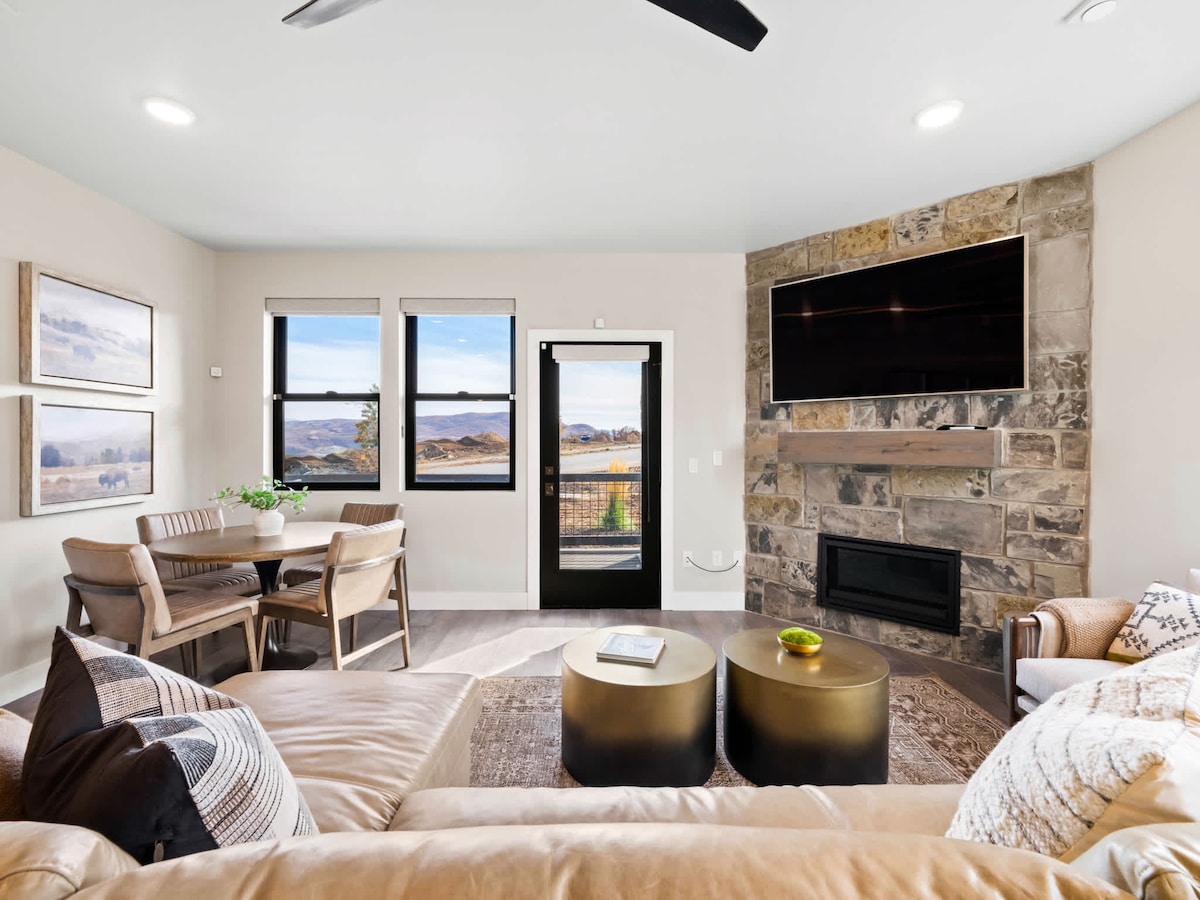 Este elegante apartamento tiene impresionantes vistas de los centros vacacionales de esquí Deer Valley y Park City a minutos de distancia, con vistas al embalse Jordanelle y al río Upper Provo, en una nueva comunidad de casas de lujo llamada Benloch Ranch. Siéntate en el jacuzzi privado para 7 personas o en el sauna finlandés al aire libre, disfrutando de las magníficas vistas, incluso haz yoga afuera en la cubierta, o relájate después de un día de esquí, senderismo, ciclismo, pesca con mosca, surf de remo en los estanques del vecindario o en el lago cercano, u otras actividades en el área de Park City.
