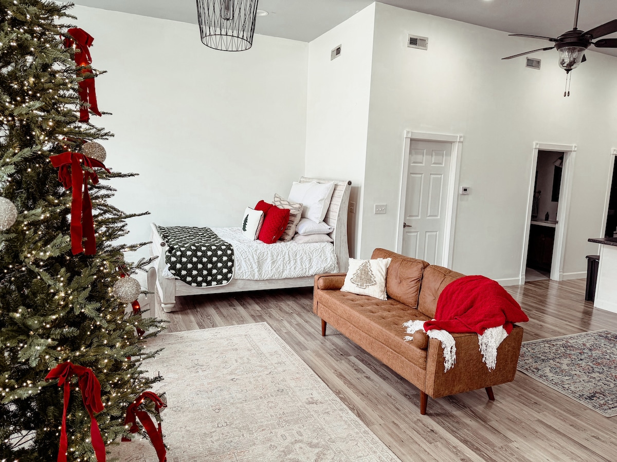 * Alojamientos cómodos * La casa tiene muchas características originales y un amplio espacio para los huéspedes. Ofrecemos tres dormitorios, uno tamaño king (en el principal), arriba contamos con 2 dormitorios más, uno con una cama tamaño queen y futón, otro con 4 camas individuales y un futón, y cafeteras Keurig. Todas las habitaciones tienen TV de 55 pulgadas. Dos baños completos, uno en cada piso. ***Nuestro alojamiento está idealmente situado cerca de atracciones, lo que facilita la exploración de la zona. La estadía incluye un pase del parque estatal para acceder a los parques de forma gratuita.