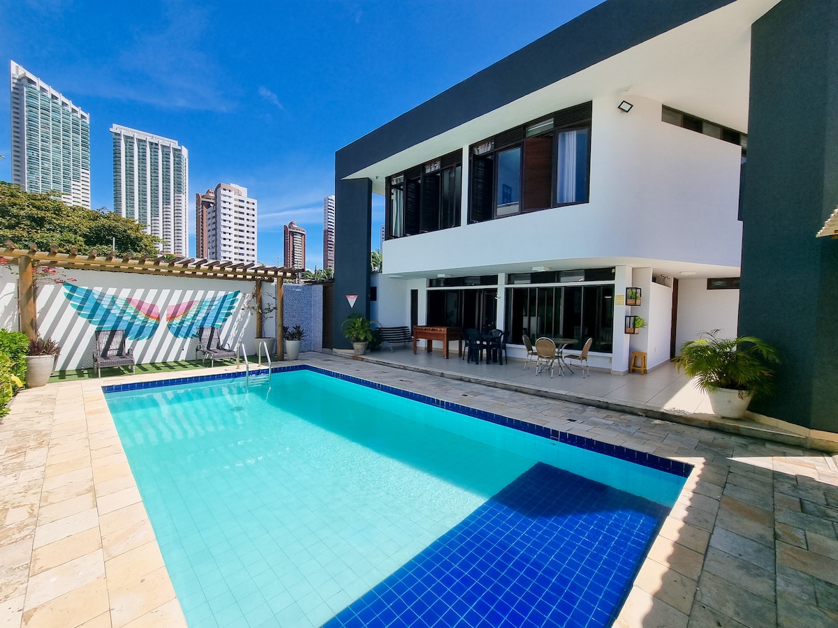 ¡Esta es la Casa Áurea! Abro mi casa para que tú y tu familia tengan lo mejor de Natal, a 100 metros de la arena de Ponta Negra, con una hermosa vista del mar y del Morro do Careca, y con la comodidad de la televisión por cable (65, 55 y 39 pulgadas) e internet.