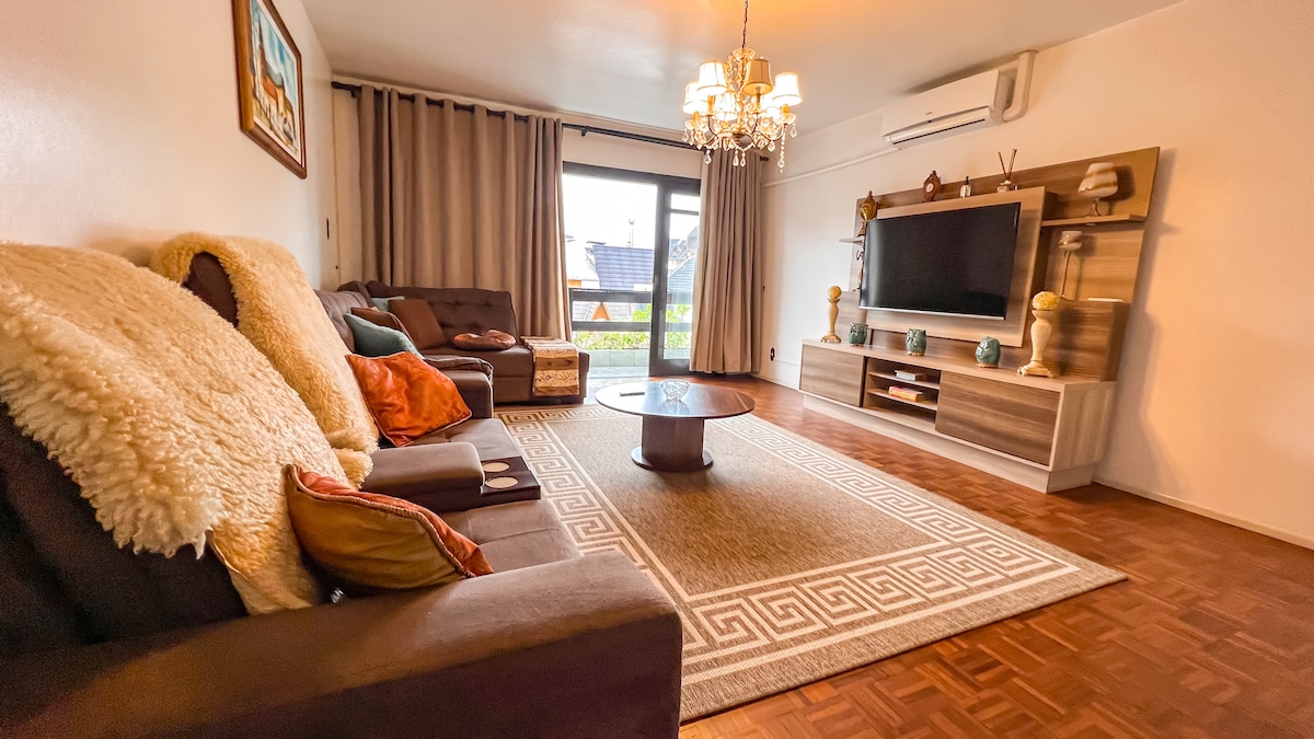 Le encantará nuestro apartamento, sobre todo por su ubicación, justo en el centro de Gramado, cerca de la Iglesia de San Pedro, el Palacio de Festivales, la Rua Coberta y al lado de los principales restaurantes y fondue de la ciudad. La vista de las torres de las dos iglesias es indescriptible. Tu estancia será muy agradable en el recién construido Solar da Encosta, ya que hemos cuidado mucho en el montaje de este nuevo apartamento para recibirte a ti y a tu familia.