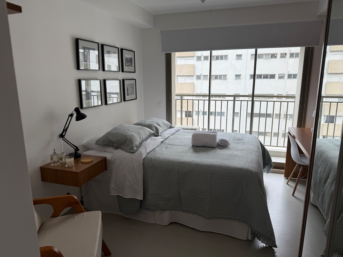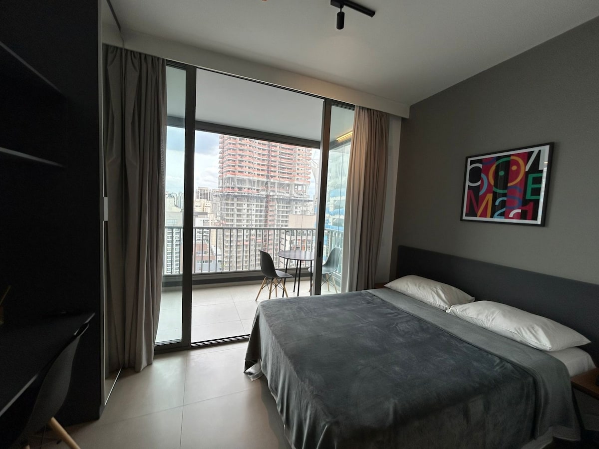 Hermoso apartamento ubicado en la región de Perdizes lleno de estilo. Estudio súper completo con toda la estructura, aire acondicionado, baño privado, cocina, heladera, microondas, Smart TV, Wi-Fi rápido, balcón con una vista increíble. El Condominio cuenta con toda la estructura necesaria para su comodidad, piscina, gimnasio, coworking, lavandería. Cuenta con una ubicación espectacular con vistas al estadio Allianz Parque, escenario de varios conciertos y partidos. Y al lado de dos centros comerciales (Bourbon y West Plaza).