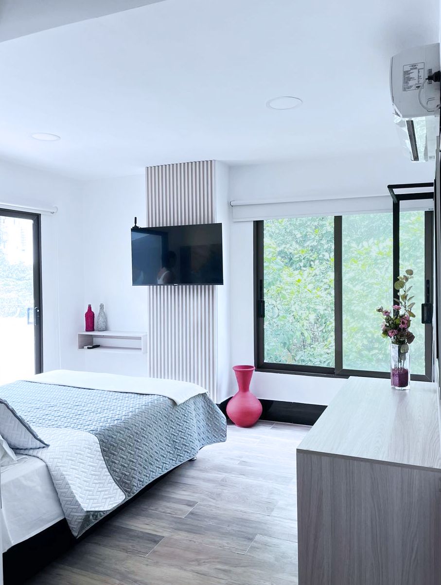 Descubre esta increíble habitación deluxe en Casa de Anfitrite, un nuevo hotel boutique con auto check-in en el centro histórico de Santa Marta. Inspirada en la elegancia mediterránea, cuenta con cama queen, aire acondicionado, Smart TV, estación de café y baño con ducha tropical. Disfruta de piscina rodeada de vegetación, zonas de descanso, agua de cortesía y ubicación privilegiada a pasos del Parque de los Novios.