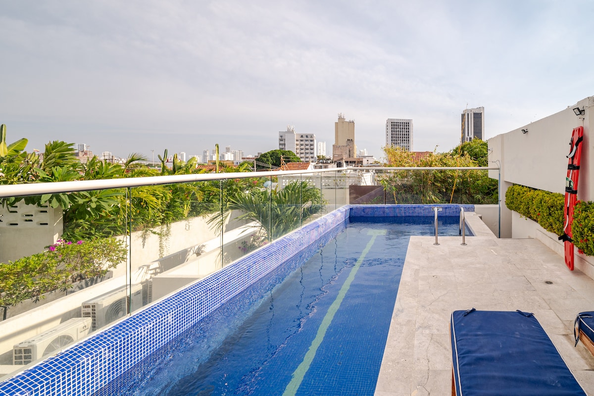 Casa Siete Infantes is a boutique-style luxury stay in the heart of Cartagena’s Historic Walled City. Its prime location places you steps from the best restaurants, plazas, culture, and nightlife, offering a truly authentic Cartagena experience. Guests can relax on the stunning rooftop terrace with views of the Old City and San Felipe Castle. As part of this historic district, occasional nearby restoration works may occur.