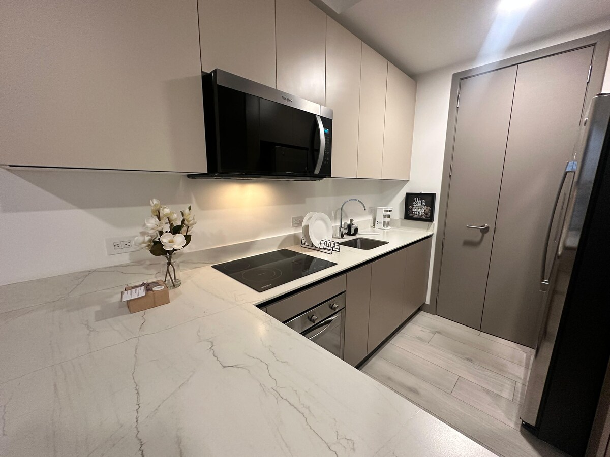It is an apartment with an excellent distribution and a modern and contemporary aspect, located near the La Sabana Metropolitan Park, an area with excellent restaurants, entertainment venues, and very close to shopping centers, Juan Santamaría airport, etc; It is on the 19th floor, with a view to the east, the mountains and the city steal the show at all hours of the day, without a doubt the sunset and night are the favorites for their colors and lights.