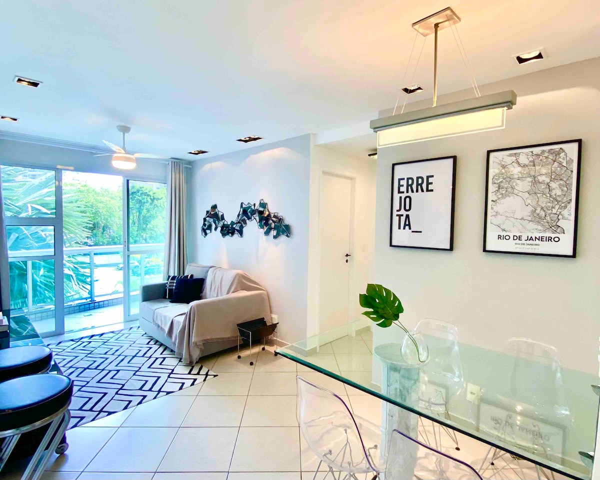 ¡Te damos la bienvenida a tu escapada en Barra/Jacarepaguá! Apto moderno y completo ideal para un máximo de 4 personas. 2 dormitorios (1 suite), amplia sala de estar, balcón y vistas parciales al Parq. Olímpico, el espacio ofrece wifi de alta velocidad, ropa de cama/sábanas de baño, cocina con utensilios básicos. El condominio tiene conserje y seguridad las 24 horas. Ubicación estratégica, cerca del Parque Olímpico, FARMASI Arena, Riocentro, playas y principales atracciones de la región. ¡Perfecto para eventos, trabajo o ocio!