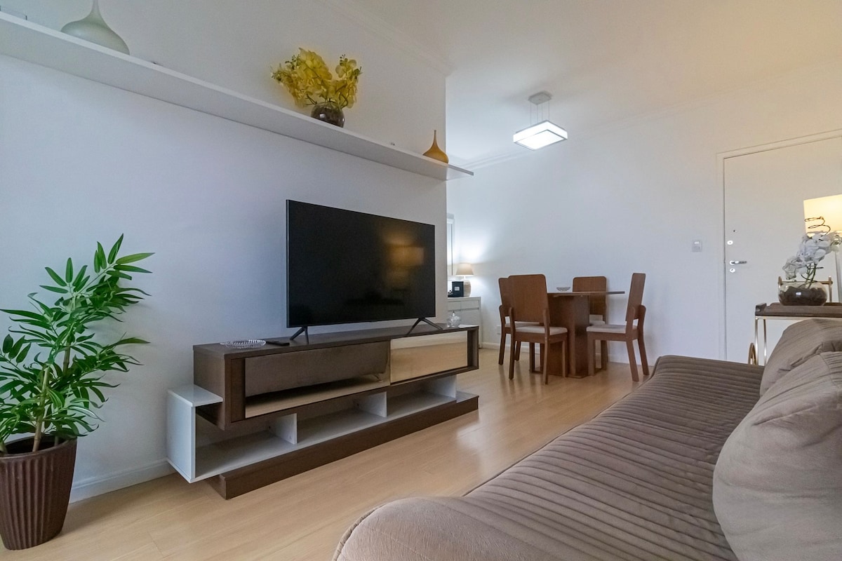 Apartamento nuevo, bien iluminado, con aire acondicionado, nevera, microondas, TV LED inteligente, todo amueblado y con gabinetes incorporados. En el condominio puedes disfrutar de piscina, gimnasio, sauna de vapor, estacionamiento, así como conserje, recepción y seguridad las 24 horas, así como servicios como lavandería de autoservicio y restaurante en el edificio. Nota: El condominio informó el 23 de junio de 2025 que la piscina estará cerrada durante los próximos meses por mantenimiento / reparaciones.