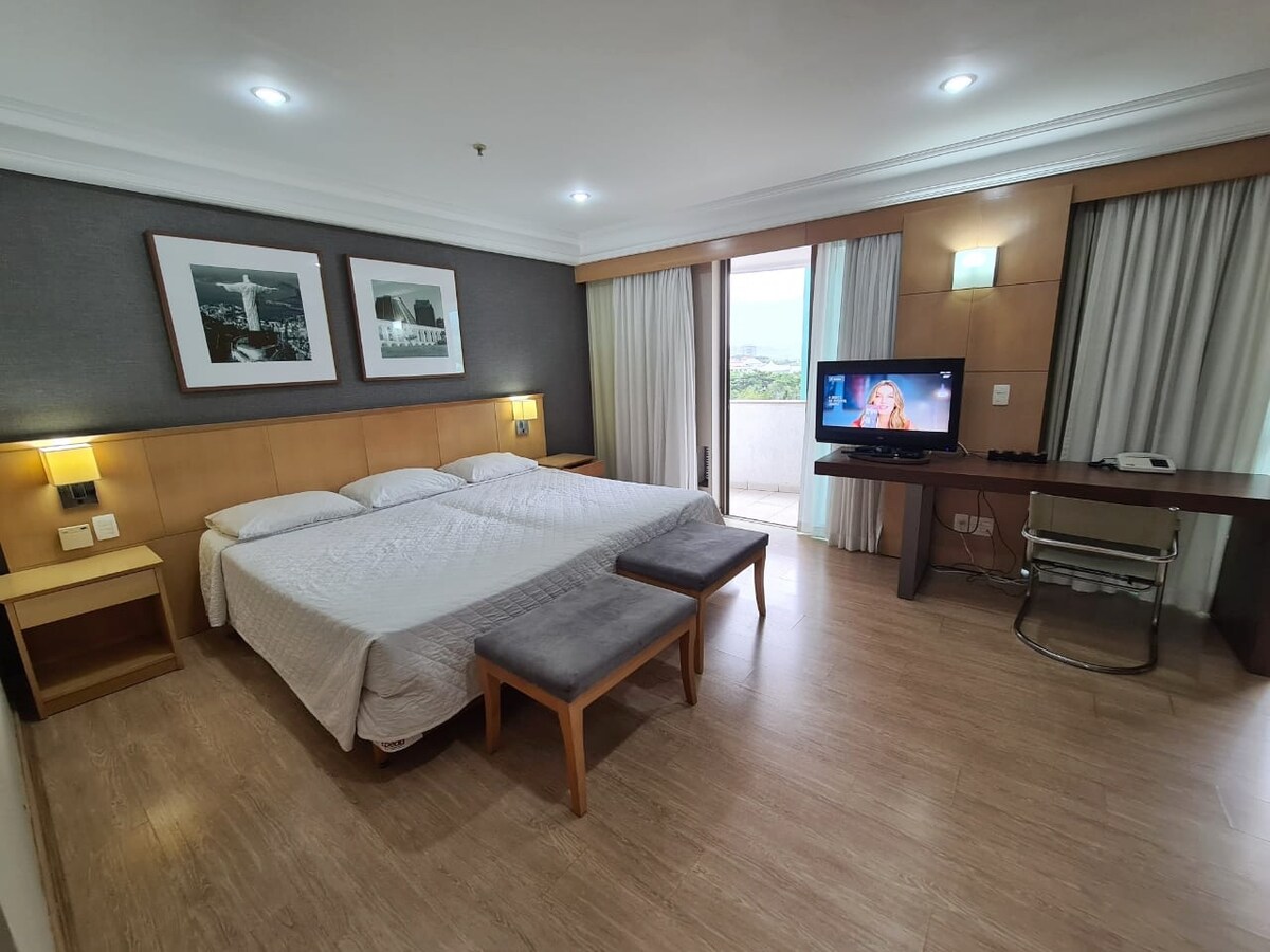 Ambiente súper tranquilo y acogedor en la mejor ubicación de Barra da Tijuca ✨ Acceso al ferry a Praia da Reserva y a toda la zona de ocio del hotel: piscina, sauna y gimnasio completo (los miércoles la piscina está cerrada por mantenimiento) AQUÍ NO PAGAS LA TARIFA DE LIMPIEZA 😉 La habitación cuenta con aire acondicionado dividido, SMARTV 32', baño privado, balcón y minibar. La recepción es las 24 horas, el condominio es súper seguro y el estacionamiento está incluido en la reservación.👍🏻 SOMOS PETFRIENDLY 🐶