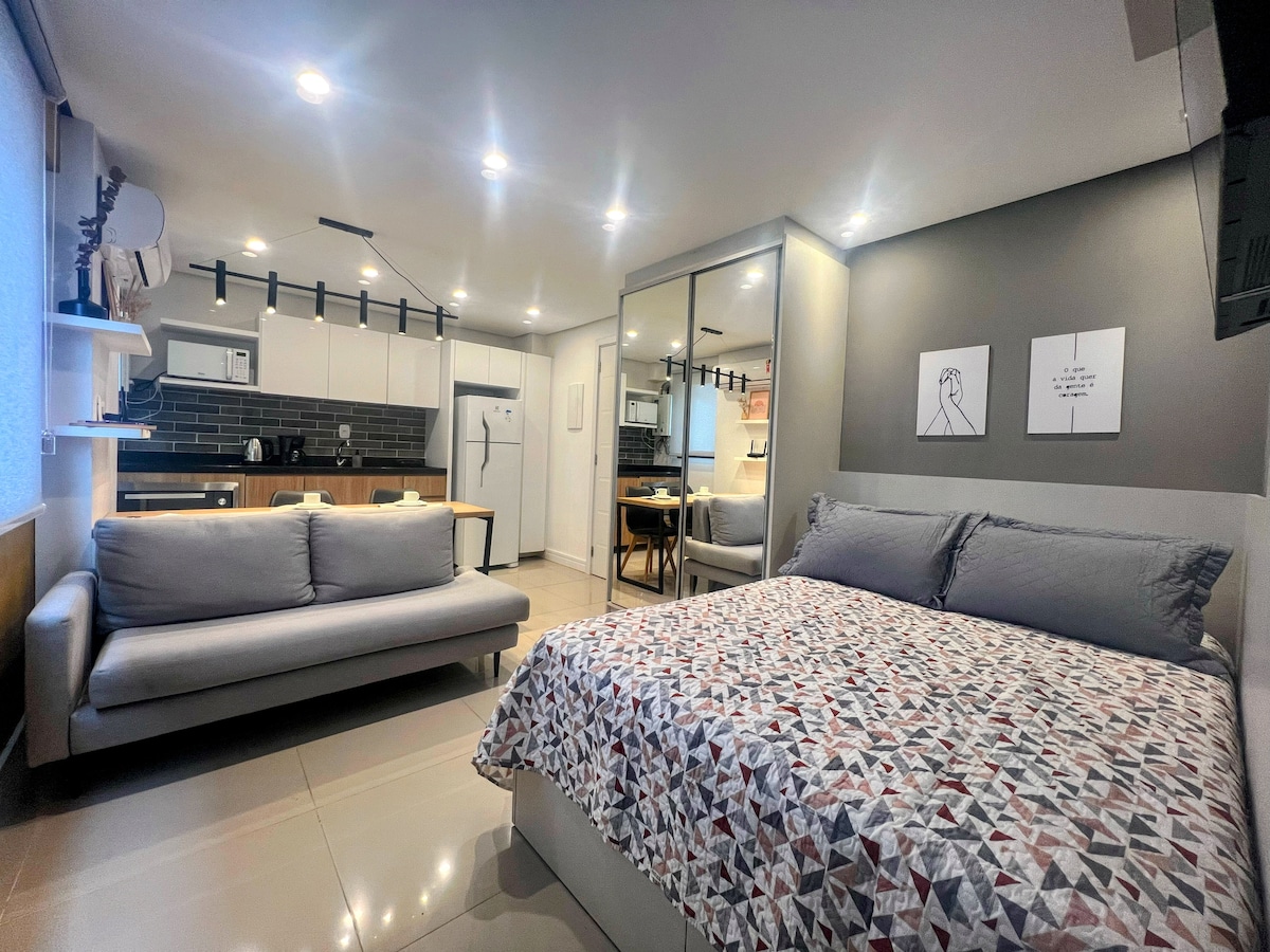 Descubra el encanto y la comodidad de este estudio en el animado barrio de Cidade Baixa. El espacio es integrado, moderno y acogedor, con capacidad para 3 personas, con cocina equipada y comodidades como aire acondicionado, Internet 350mb y Smart TV. Cuenta con conserjería 24 horas y check-in autónomo. Cerca de varios puntos de interés: A pie: Pq. da Redenção: 10 min UFRGS: 10 min Hosp. Santa Casa: 12 min En coche/Uber: Aeropuerto Salgado Filho: 20 min Orla do Guaíba: 5 min PUC: 14min Estación de autobuses: 10 minutos Barra Shopping Sul: 15 min