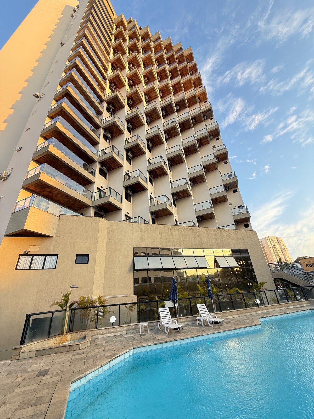 Flat muito espaçoso e totalmente equipado com 56m² divididos em 3 ambientes para descanso, trabalho e laser! Localizado no Hotel Summit Flat Service que tem no terraço um restaurante da famosa franquia Pink Elephent de onde terá a melhor vista panorâmica em 360° da cidade. Nas áreas comuns vários lounges decorados, sala de café e acadêmia com equipamentos de última geração além de um belíssimo elevador panorâmico Com privacidade e segurança de acesso direto ao andar pela garagem no subsolo