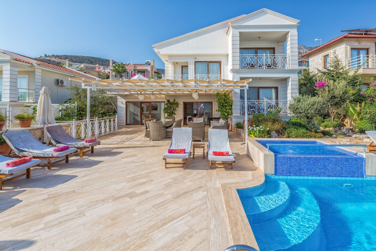 Villa Beyaz Kelebek en Kisla es una de las mejores propiedades de la zona y se encuentra directamente en el paseo marítimo, con grandes áreas al aire libre. La posición garantiza magníficas vistas al mar, hay una gran piscina privada con infinito aprovechando al máximo la vista. Hay un jacuzzi en la terraza superior detrás de la villa con magníficas vistas a la bahía y Kalkan. Una escalera con 150 escalones te lleva a la plataforma marítima y al acceso al mar, a veces también hay pescadores locales.