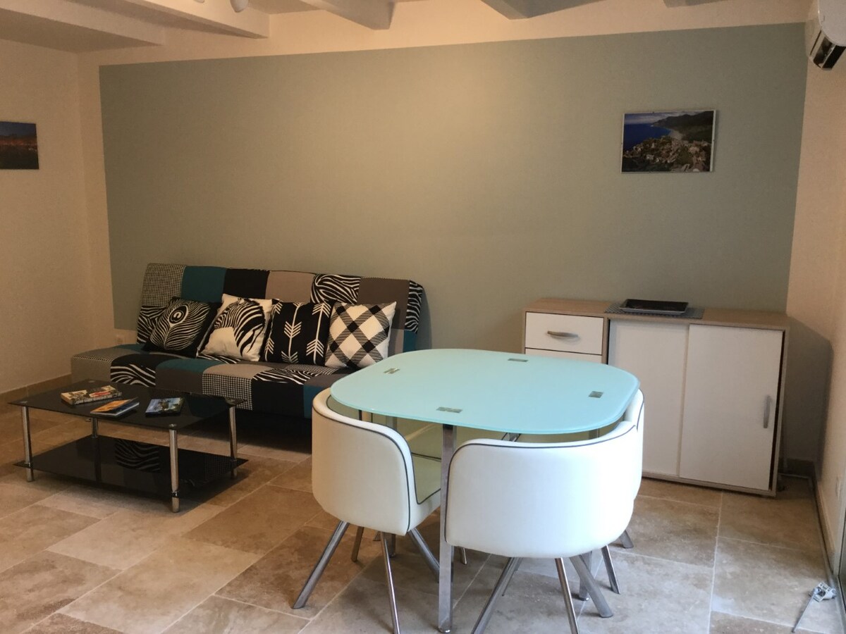 Bienvenido a la página de mi estudio en la planta baja de mi casa en el hermoso pueblo de Patrimonio. Después de 2 años de perfeccionarlo, le propongo pasar unos días en lugar de una noche. Para disfrutar de los senderos a través de los viñedos de fama mundial, las playas sublimes de Saint Florent y Farinole, el río que fluye en el pueblo. Pero también de mi espacio exterior donde se puede leer, almorzar, pasear y cocinar a la barbacoa o al horno de leña.