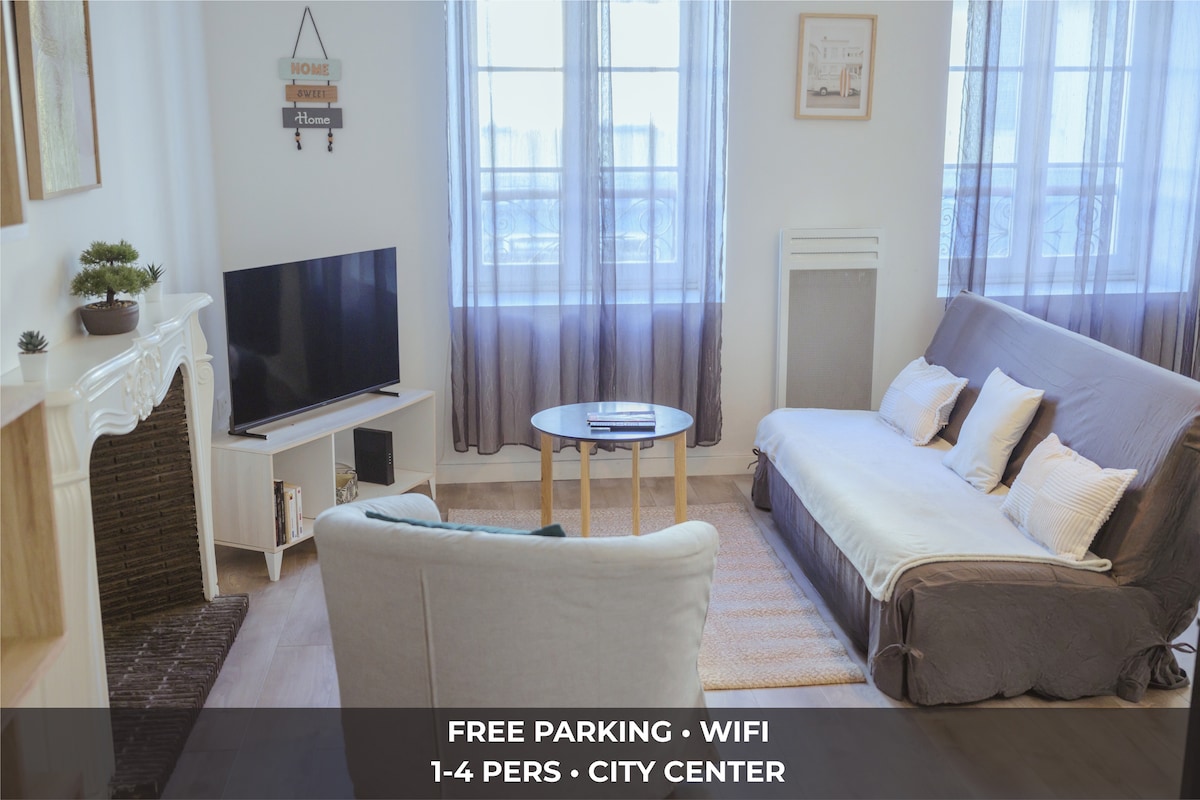 Al pie del Castillo de Enrique IV, apartamento luminoso y transversal con cocina equipada, un gran dormitorio con cama de matrimonio y una sala de estar con sofá cama que puede acomodar a un tercer viajero. Situado a 350 m del centro histórico y a 700 m de la estación de tren, ideal para una estancia turística o profesional en Pau.