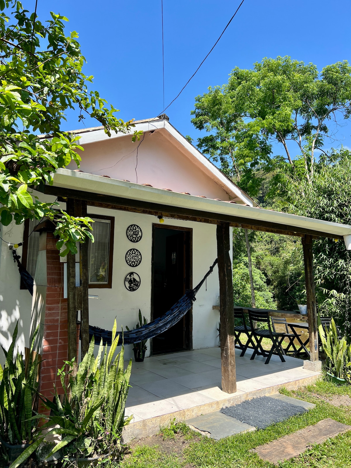 @CasasFlambo Rodeada por el bosque atlántico y con el río que pasa detrás, nuestra cabaña tiene capacidad para 4 personas con comodidad y encanto. Tiene aire acondicionado, Wi-Fi, TV inteligente, cocina equipada, parrilla, hamaca y vistas al río. Ideal para parejas y grupos pequeños que buscan descanso y contacto directo con la naturaleza. 🐾 ¡Se admiten mascotas!
