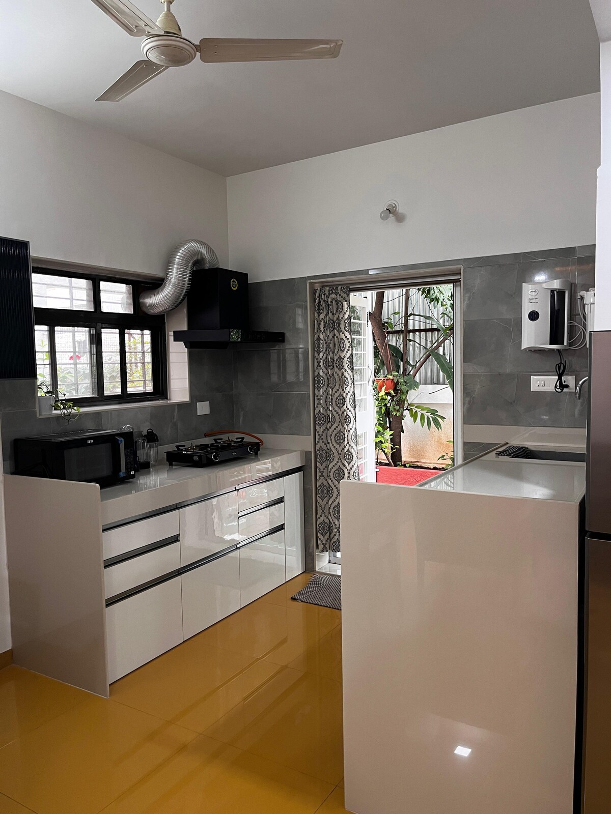 Welcome to a calm and comfortable 1BHK studio ideal for couples, families, solo travelers, friends, and remote workers. Whether you’re here for a quiet weekend, a work-from-home stay, or a longer peaceful break, this home offers the right balance of comfort, greenery, and convenience. The private balcony overlooks lush green surroundings near the golf course. With fast WiFi, OTT apps, and a quiet gated environment, it’s easy to slow down and feel at home.