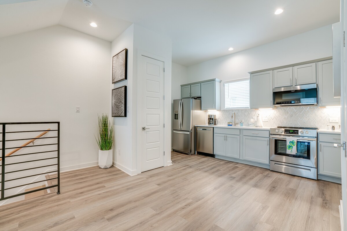 Situada en el centro de la ciudad, nuestra lujosa casa adosada de 3 pisos está a solo unos minutos del centro de la ciudad. ¡Estarás a menos de 10 minutos de las principales atracciones como Riverwalk, The Alamo, el Centro de Convenciones, Alamodome, Frost Bank Center y Pearl Brewery! La casa adosada es una nueva construcción. Cuenta con garaje privado (cargador Tesla incluido) y 3 dormitorios, cada uno con su propio baño completo. ¡Perfecto para grupos que prefieren no compartir un baño! ¡Cocina totalmente surtida y Xbox incluida!