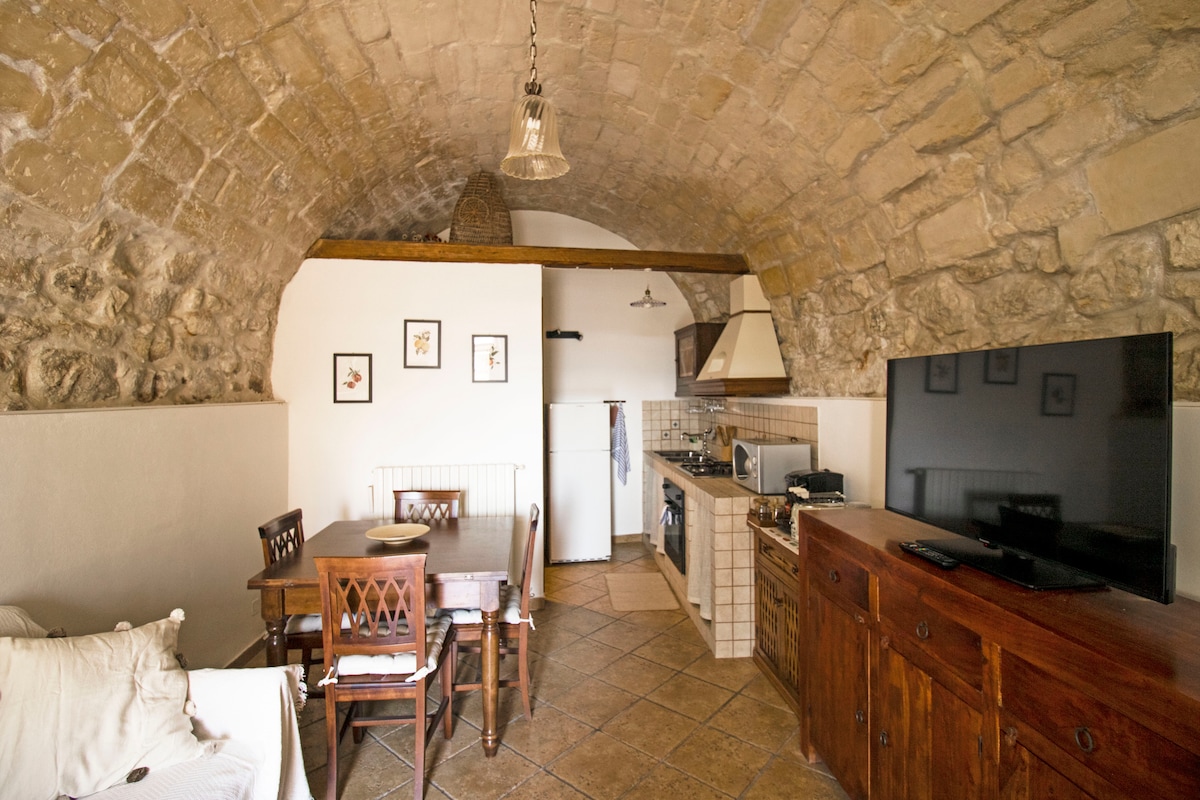 Situado en el interior de una casa señorial, a solo 20 minutos del mar y del aeropuerto de Comiso, Ai Due Leoni es el destino ideal para aquellos que quieren descubrir y disfrutar plenamente de las tradiciones y la cultura siciliana, inmersos en la campiña de Ragusa entre campos de trigo y muros de piedra seca típicos de la zona. El apartamento cuenta con una cocina con horno y utensilios, un baño, dos habitaciones dobles, una habitación individual, un comedor/sala de estar con TV de pantalla plana y una cesta de bienvenida sorpresa.