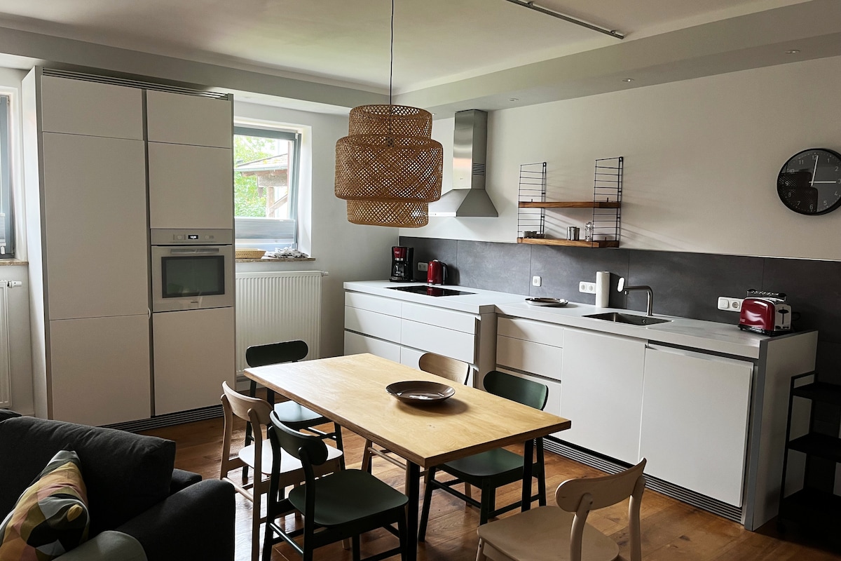 Die modern eingerichtete Wohnung befindet sich im Erdgeschoss unseres kleinen Einfamilienhauses und strahlt Tiroler Gemütlichkeit aus. Der wunderschöne Blick von Wohnbereich und Terrasse aus über die Felder Achenkirchs, direkt auf das Rofangebirge und die Seekarspitze, erleichtert das Fallenlassen vom Alltagsstress und lädt zum Genießen und Entspannen ein. Der Achensee, als größter See Tirols, ist 2 km entfernt, das Skigebiet ist fußläufig erreichbar, der Golfplatz liegt in 1 km Entfernung.
