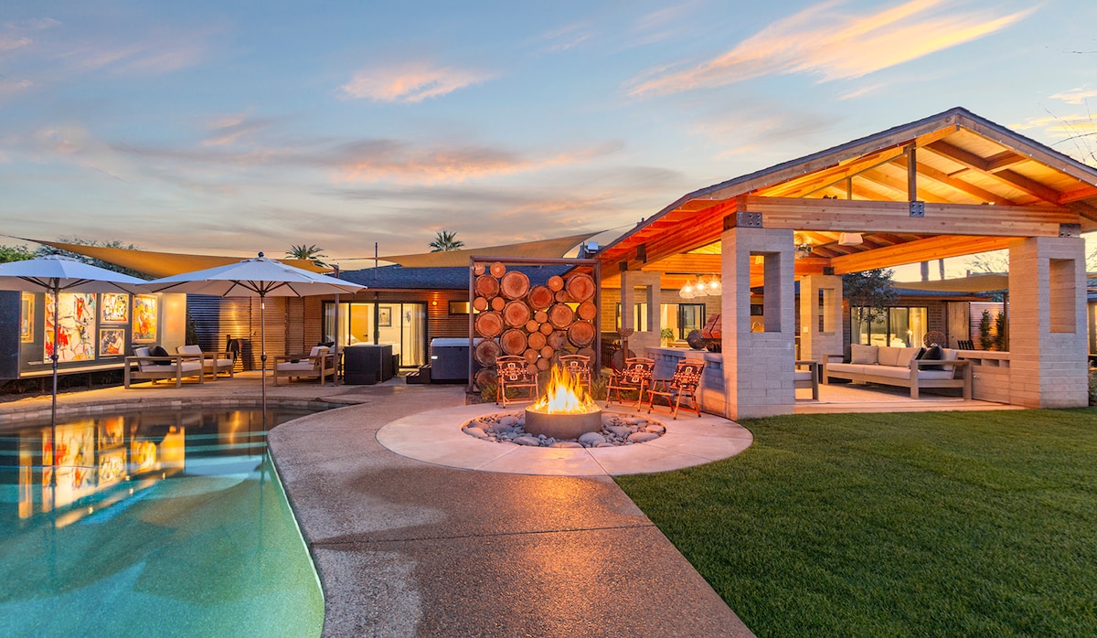 @SaunaHausPhoenix disfruta de una auténtica sauna finlandesa y una experiencia de inmersión en frío en esta casa Arcadia moderna de mediados de siglo con una ubicación céntrica. A 10 minutos del aeropuerto, Old Town Scottsdale. Apto para perros y cerca de rutas de senderismo. Carga de vehículos eléctricos EV-2. Scottsdale Fashion Park y Downtown Tempe-ASU. Fogata de propano, barbacoa, 4 bicicletas y patio trasero privado vallado apto para mascotas. En bicicleta a lugares emblemáticos en minutos. Camina por el canal hasta las canchas de tenis/pickle ball, la tienda de comestibles, la cervecería, la cafetería, los restaurantes y el parque AZ Falls.