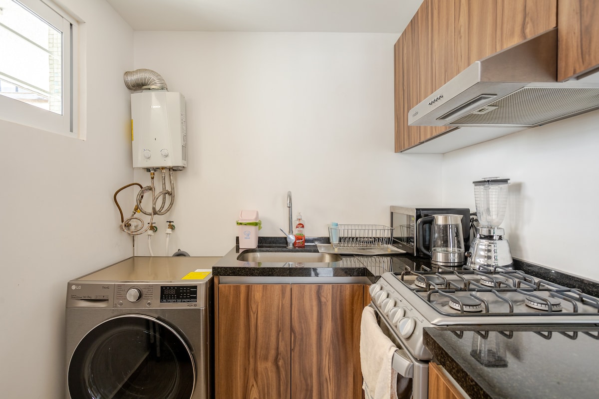 Beautiful loft in a rooftop garden of a family house in Hipódromo Condesa, perfect for two guests. Functional, comfortable and cozy, with a charming private terrace and plenty of natural light. Ideal for those seeking a safe, peaceful, and functional space in a privileged location. The perfect base for exploring the city
