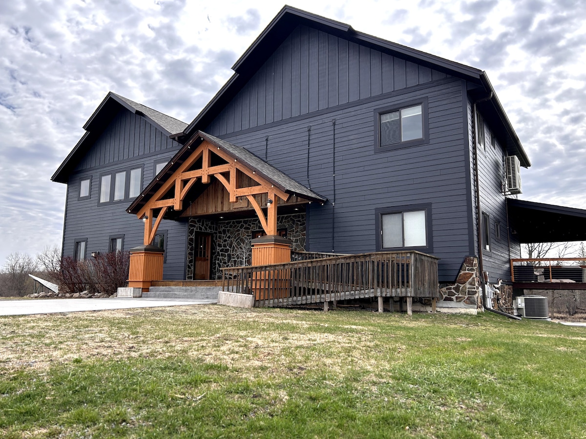 El River Lodge se encuentra en una tranquila finca de 5 acres a orillas del río Misisipi y cuenta con tres niveles con 7 dormitorios más áreas de dormitorio adicionales en el loft y la sala de juegos, lo que permite alojar hasta 22 huéspedes. La gran sala ofrece un gran espacio para reuniones, perfecto para reuniones y retiros. Con 3 salas de estar adicionales, todas con televisores inteligentes, 5 baños, una sala de juegos con ping pong, varias salas de estar al aire libre, un hermoso patio con chimenea y juegos de césped para disfrutar, ¡hay diversión para todos!