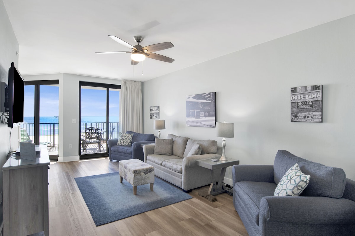 ASK about DISCOUNT rate for monthly stay in January and February 2026. DON'T FIGHT THE CROWDS for space on the beach! Unwind in our comfortable 4th floor Beach Front "Slice of Paradise" with private beach. The balcony offers unobstructed, gorgeous views of the Gulf and the beautiful white sands of Perdido Key. Soak up the sun as you kick back on the balcony and count the dolphins while being lulled by the sound of the waves and the salt air breeze. Recently UPDATED-New photos coming soon!