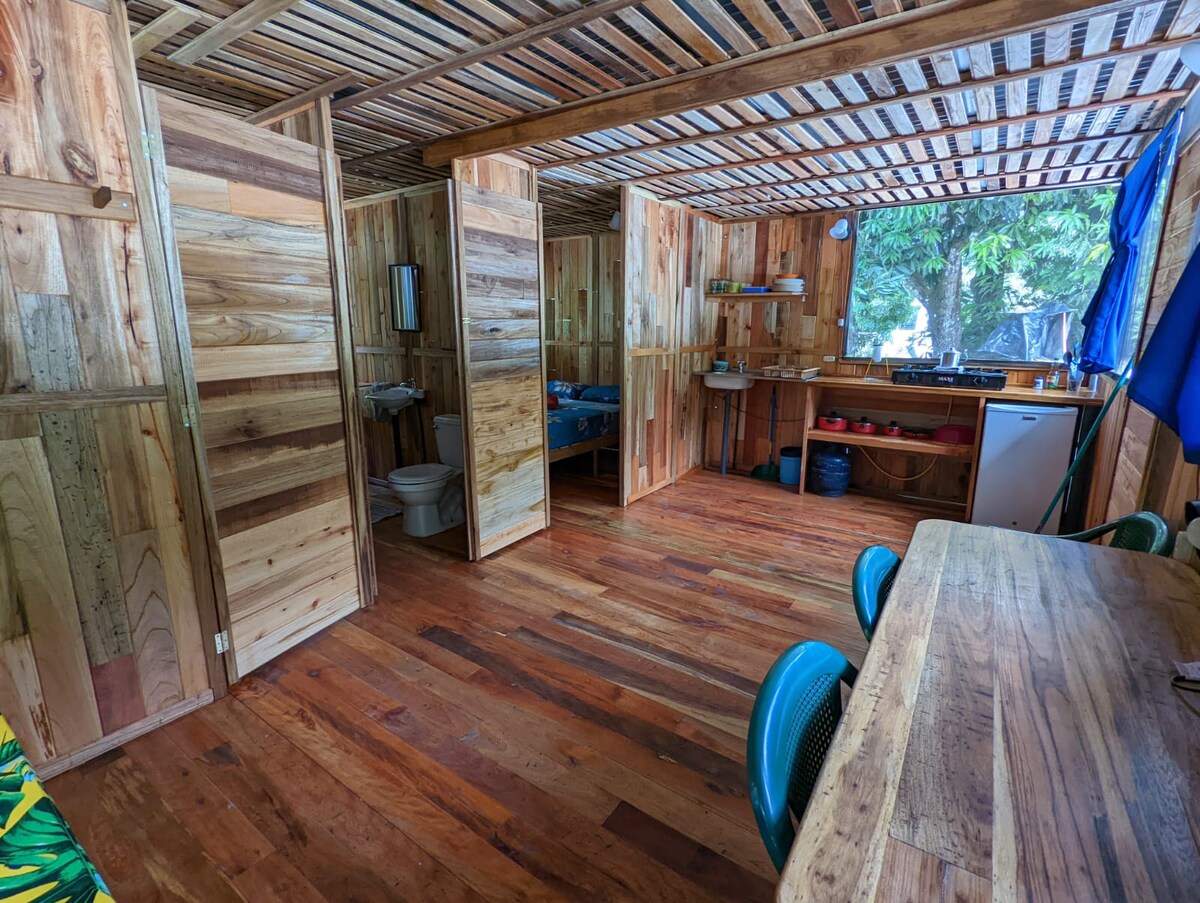Cabin 14 Spacious and elevated Private 40 m² cabin located on the first floor, at the front of the property, with a beautiful view of the surrounding tropical trees. It features 2 bedrooms with double beds, a sofa bed, kitchen-dining area, private bathroom and shower, and fans. Bright and comfortable, it’s a great family-friendly and budget-conscious option for those looking to relax in nature. Includes access to all Arboura amenities.