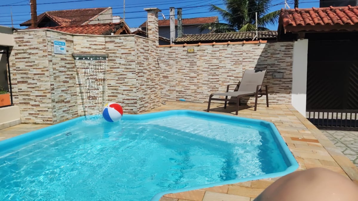 Ótima casa com piscina localizada a 50 m da praia, no bairro Stella Maris em Peruíbe, litoral sul de São Paulo.