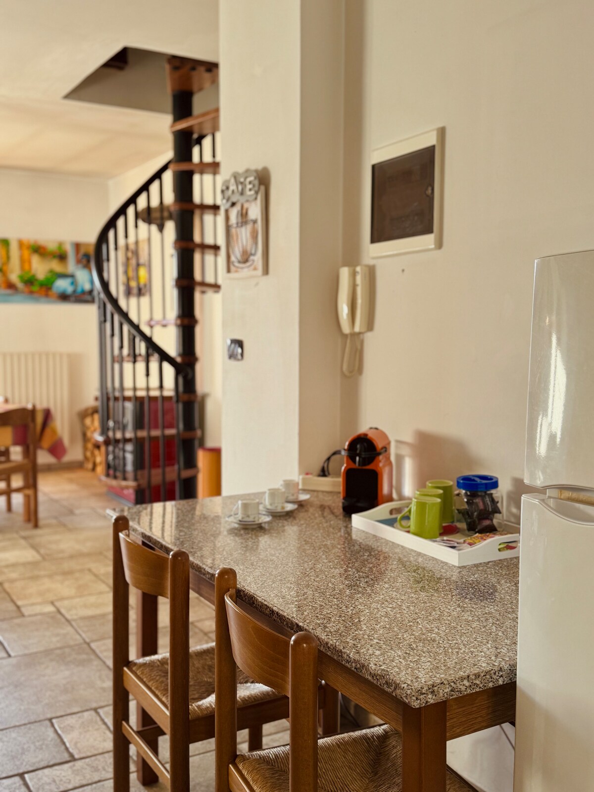 Nuestra casa, entre los árboles, vive en un apacible aislamiento a un par de kilómetros de la localidad más cercana. Somos Riccardo, Cristina, Lorenzo, Bianca y Alice. Elegimos venir aquí, al bosque, para empezar a vivir una vida sencilla pero plena, aprendiendo de la naturaleza. Les ofrecemos un ático abuhardillado renovado con esmero por Riccardo, con cama doble, sofá cama (ambos bajo lucernarios), cocina americana, baño y una amplia vista al valle.