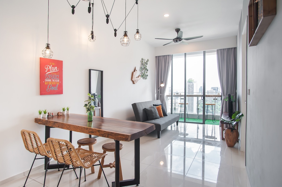 Sit back and relax in this calm, stylish space. Why Panoramic 2BR suite at Lucentia: - Best views of KL - Beautifully decorated with a fun spirit - Centrally located & attached to public transit hub - Fast wifi - 2 TVs with Netflix & others - 2 gorgeous pools - Family friendly with baby crib & highchair - Gym, pool table, BBQ pits, piano - Garage parking - Recommended to Sleeps 4 people max 6 - LaLaPort Shopping Mall & the WOW entertainment street are attached - Grocery, drug store & Cinema etc