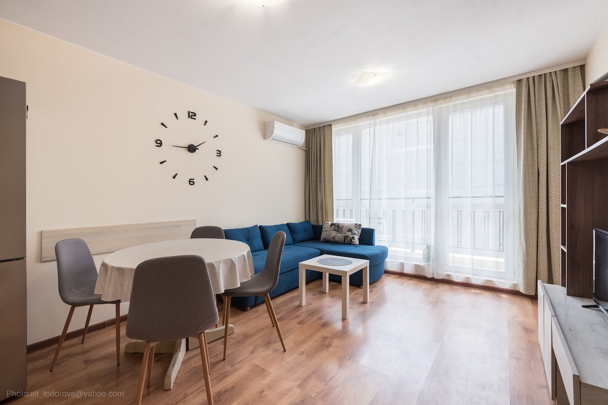 Welcome to Your Perfect Varna Getaway! *No cleaning Fee!* -1.7 km from Varna center, 9 km from Varna Airport. -Next to Grand Mall Varna & Central Bus Station. -Fully equipped kitchen. -Paid public parking in front (green zone); paid parking 8 minutes away. -Air conditioning, free Wi-Fi, and TV in every room. -Enjoy views of Varna city or the Black Sea. -Nearby grocery stores like Billa. -Baby crib available on request. We look forward to hosting you!