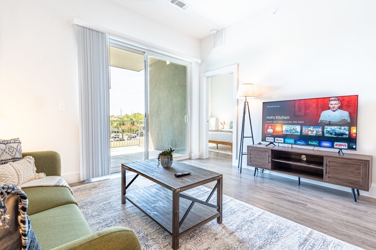 Disfruta de una estancia cómoda en este luminoso y moderno estudio del norte de Austin, perfectamente adecuado para viajes de trabajo, escapadas de fin de semana o estancias prolongadas. Diseñado tanto para la relajación como para la funcionalidad, este espacio tiene todo lo que necesitas para sentirte como en casa. ✔ Capacidad para 4 personas: cama tamaño queen, futón y colchón de aire Distribución de estudio✔ abierto ✔ Cocina totalmente equipada ✔ Lavadora y secadora en la unidad. TV ✔ inteligente con acceso a Roku Wifi ✔ de alta velocidad Servicios ✔ comunitarios: gimnasio, salón al aire libre, estacionamiento gratuito
