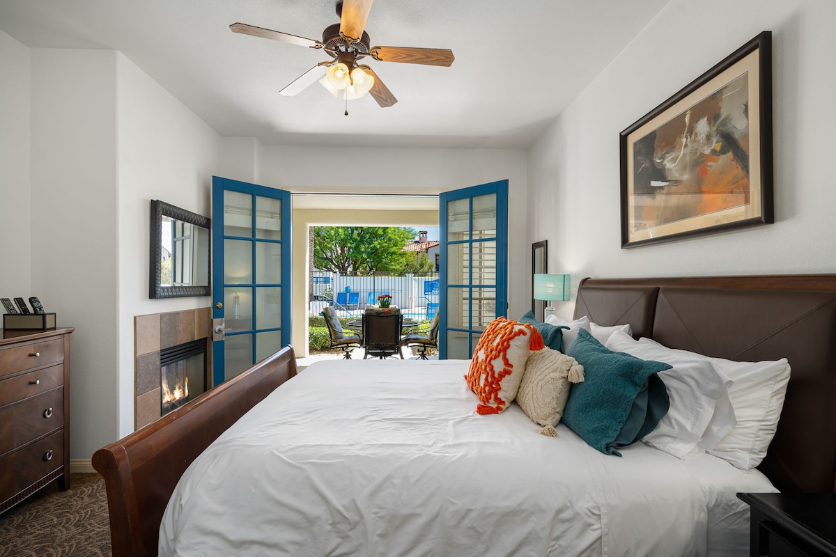 ¡Alojamiento en La Quinta con tarifas especiales y seguro contra la COVID! Aprovecha el apartamento para trabajar desde casa lejos de casa. Este apartamento en el último piso recién decorado tiene 3 dormitorios enormes y 3 baños. Cada habitación cuenta con sábanas blancas nítidas de hotel y un edredón de plumas alternativo y mullido. El dormitorio King y la sala de estar cuentan con TV inteligente y chimenea. Hay un enorme balcón para que disfrutes de las vistas de las pintorescas montañas de Santa Rosa mientras descansas y disfrutas de las comidas preparadas en la parrilla al aire libre.