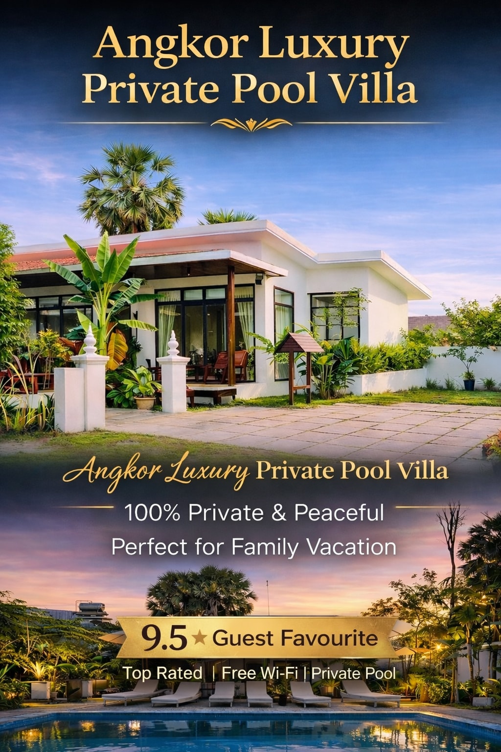 Te damos la bienvenida a nuestra impresionante villa privada de lujo de 4 dormitorios con piscina en Angkor, ubicada a solo 2 km del vibrante corazón de Siem Reap y la famosa calle de los bares. Ubicada en un amplio jardín privado de 2500 m², la villa cuenta con cuatro bungalows separados, que ofrecen la máxima privacidad y comodidad para familias o grupos. Relájate junto a tu piscina privada o disfruta de los tranquilos alrededores del jardín mientras sigues estando cerca de las principales atracciones de la ciudad, incluido Angkor Wat.