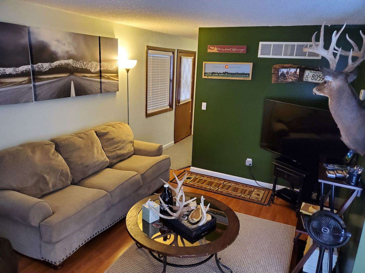 We call this rural acreage the highway house. It's located in the country with ample parking available. It also is wonderfully accessible to numerous hunting locales for hunters. It's within 10 miles to the Kirwin Wildlife Refuge, and there's great hunting opportunities for deer, pheasant, and other wildlife nearby. The house is located directly off highway 36, so the roads are always accessible. Large flat screen tv with ROKU, and Wifi are provided. Several recliners in living room area.