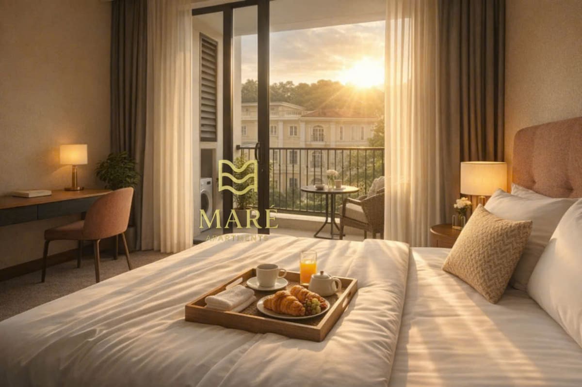 Este estudio está en Sunset Town (28 m²). Como anfitrión de una startup, me he esforzado mucho en crear un espacio cómodo y elegante para que los huéspedes disfruten. Acceso gratuito a una piscina infinita, club infantil y gimnasio A 5 minutos a pie de la estación de teleférico, el mercado nocturno y el supermercado A 7 minutos en auto de la playa de Khem. Uno de sus aspectos más destacados: fuegos artificiales nocturnos desde el balcón y una impresionante puesta de sol desde la piscina infinita de la azotea. Espero que este espacio se sienta como tu hogar lejos de casa.