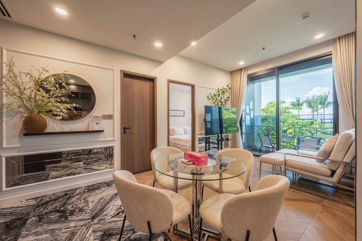 Ubicado en Vinhomes Central Tower 3, diseñado en un estilo moderno-industrial, con un tono negro-gris minimalista pero aún cálido y sofisticado. El espacio abierto crea una sensación de amplitud y luminosidad. Esta es una opción ideal para aquellos que buscan un lugar cómodo, estético y privado para alojarse justo en el centro. Todo está cerca cuando tu familia se hospeda en esta ubicación céntrica (a unos 200 m de Landmark 81)