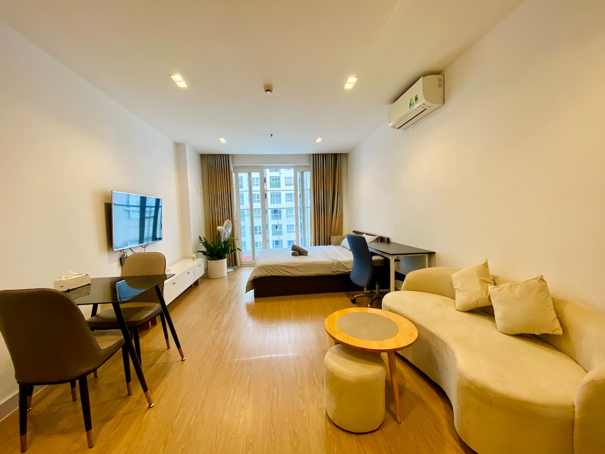 The apartment is suitable for guest and family combining business trip and vacation. It gives visitors the feeling of staying at an elegant hotel but enjoying a family-like atmosphere. - King bed 1.8 x2 meters wide and 1 Sofa bed 1.8x2 meters wide for family of 4 people. - 2 working tables, 1 piano, 58" TV with more than 100 free channels: Netflix, HBO, Max, Sports, - Cooking area, tea table + dining table, minibar, refrigerator, washing machine - Free swimming pool - 5 minutes to the airport