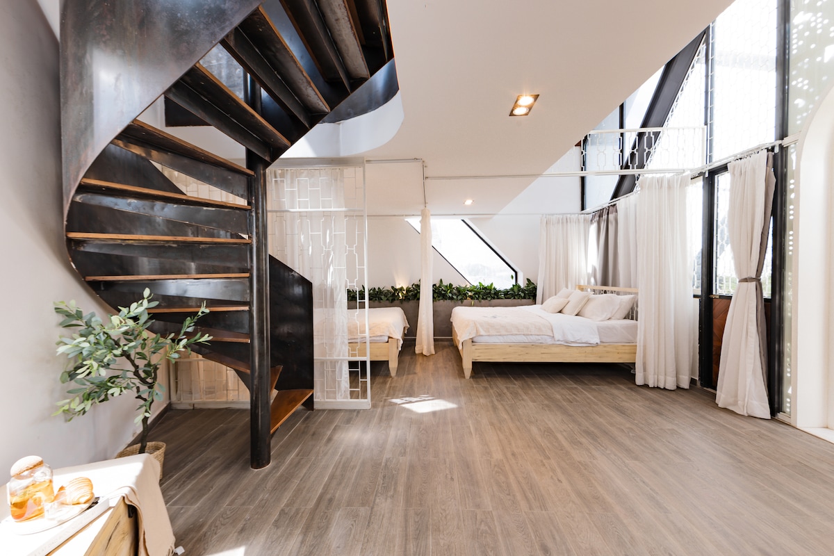 Dalat Homestay Kettle con arquitectura única inspirada en la cálida tapa trae un espacio abierto lleno de luz, exquisitos muebles de madera y muchos hermosos rincones virtuales para que experimentes el estilo de vida, con la cantidad justa de "VIVIR menos, VIDA FELIZ". Con una superficie de 9 m2, el inodoro está separado de tu dormitorio, por lo que tu espacio es más fresco.