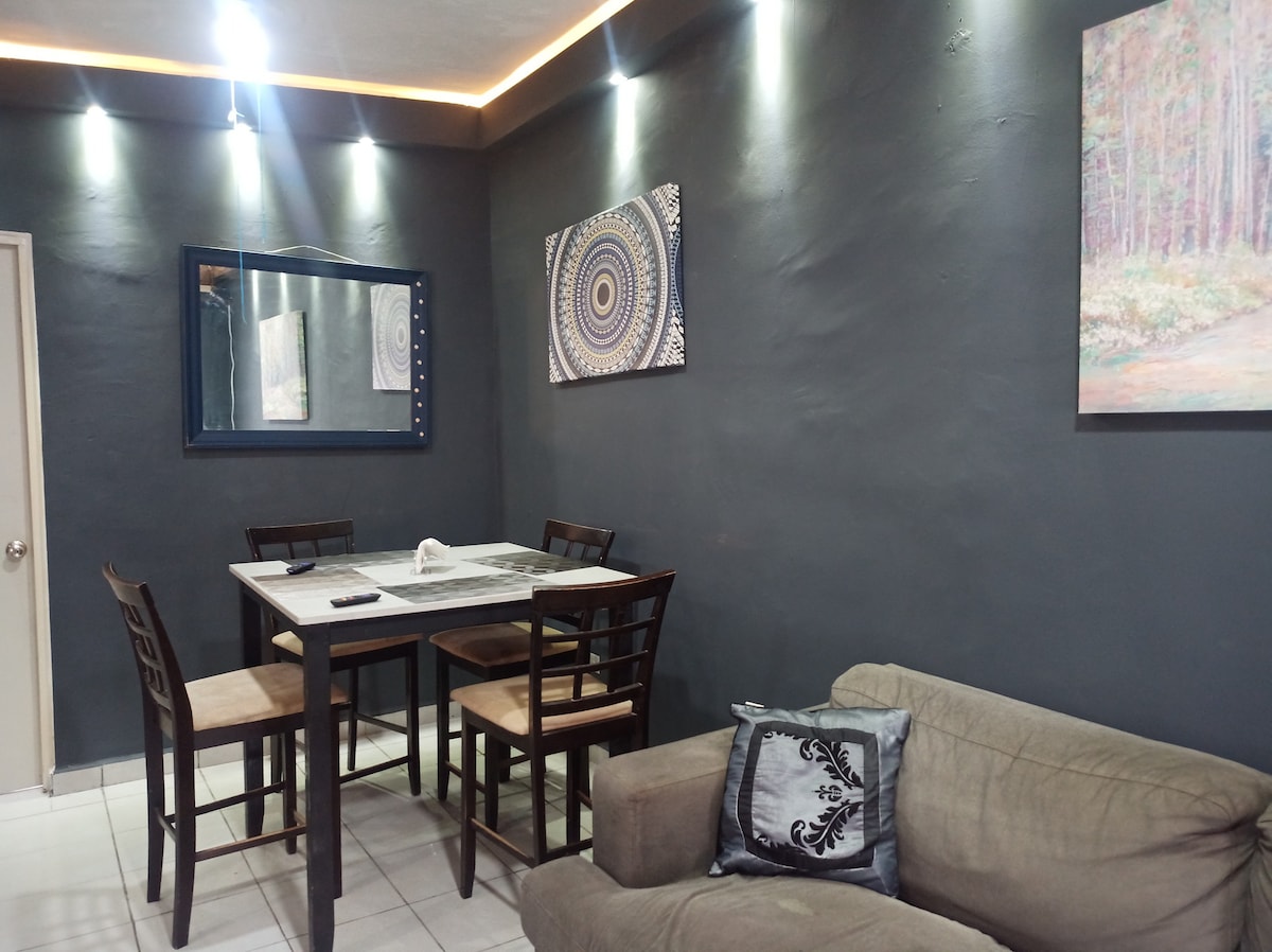 Departamento en zona tranquila. Cuenta con 3 habitaciones equipadas con cama, televisor de 32", minisplit 1 ton 2 tiempos, closet y ganchos para guardar tu ropa en estadias largas. Refrigerador, estufa , cafetera, licuadora, artículos para cocina. 15 min del puente internacional 8 min de aurrera, soriana 5 min de hospital empresas littelfuse, EKM, vidriera, cervecera cerca. el costo no incluye uso de jacuzzi (ver precios en reglas de la casa)