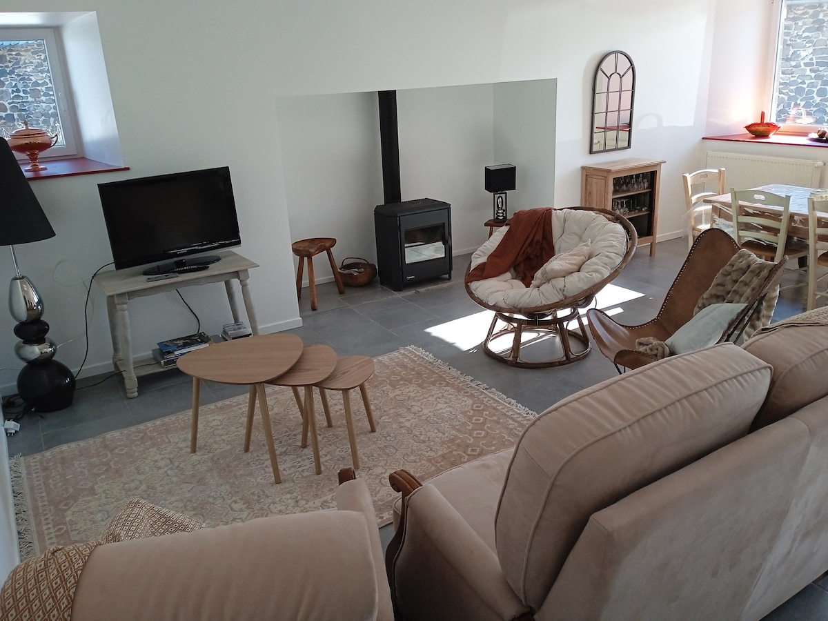 Cette grange spacieuse, rénovée avec goût vous enchantera de par son emplacement en pleine nature, dans un cadre préservé. La terrasse de 28m² offre un panorama unique sur la forêt, on y est bercé par le son du ruisseau en contre bas. Ici pas de TV mais des livres. Chaque détails a été minutieusement pensé, tout a été chiné. Ce logement de 112 m², tout équipé, avec 2 chambres doubles, une grande pièce à vivre avec insert, un beau jardin, est un lieu ou le temps est suspendu. Aucun vis à vis.