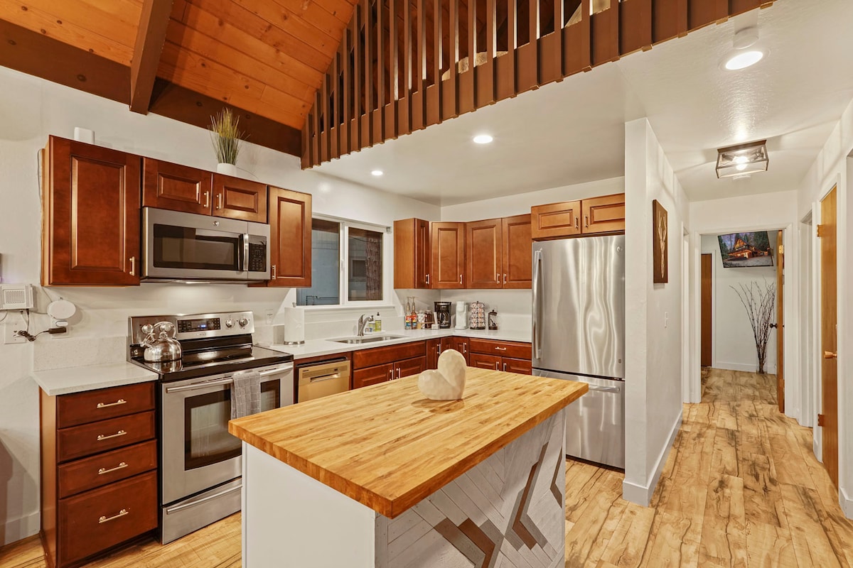 Wanderhaus es un chalet con vista al lago cuidadosamente seleccionado a solo 30 minutos de Yosemite. Con techos abovedados, toques de diseño y una cálida estética de montaña, el espacio está hecho para escapadas tranquilas y aventuras al aire libre. Disfruta de dos terrazas soleadas, una fogata y acceso a playas, senderos y servicios en una comunidad privada cerrada, perfecta para relajarte en el interior o explorar el aire libre.