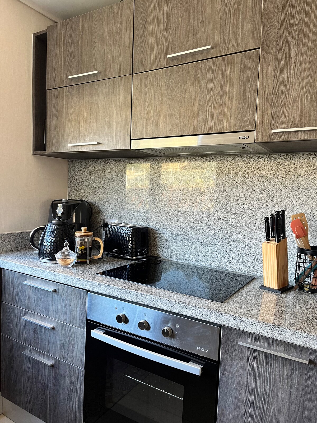 Moderno Dpto NUEVO full equipado, ideal para viajes familiares o de trabajo. Decoración acogedora que harán que tu estadía sea lo más confortable y segura posible, Ubicado en un barrio tranquilo y con un entorno rodeado de mucha naturaleza. Cuenta con conserjería 24 hrs, ascensor en el edificio, viene incluido estacionamiento gratis a pasos de la entrada principal. Con una ubicación privilegiada a pasos de Casino Marina del Sol, del Aeropuerto Carriel Sur, Mall trébol etc. A 2, 30 de las termas