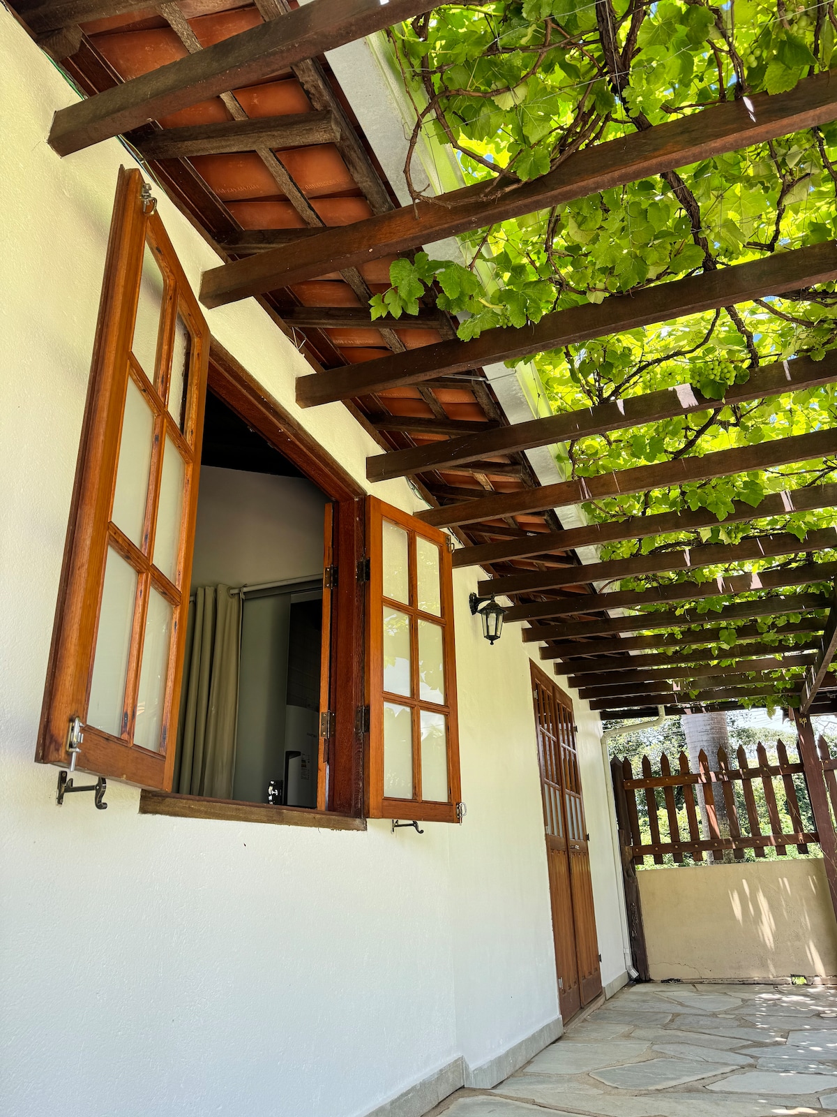 ¡Relájese y viva una experiencia tranquila y acogedora! Casa con tres suites. Suite 1 superior: cama king, aire acondicionado, televisión y balcón. Suite 2 superior: cama queen, aire acondicionado. Suite 3 planta baja: cama doble queen, cama auxiliar y aire acondicionado. Sala de televisión, con sofá cama y Wi Fy. Cocina americana equipada con utensilios y electrodomésticos. Zona de ocio con baño, barbacoa, piscina (10mts2) con calefacción solar, mesas y sillas