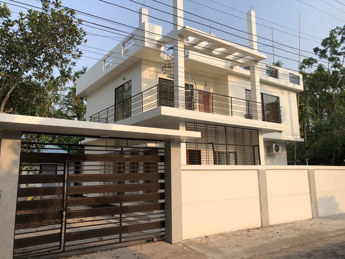 Relax with the whole family at this peaceful place to stay. Duplex building. Only GF 1200 Sft is usable .One bed boom with AC attached bath. others area is open where dining drowning and one bed. Microovene, refrigerator kitchen, Family food is available. Higher officials of Bank , NGO and Government organization is preferable . if any query pls contract with me directly ০১৭৩০৪৪৩১১১. Safely car parking inside the house