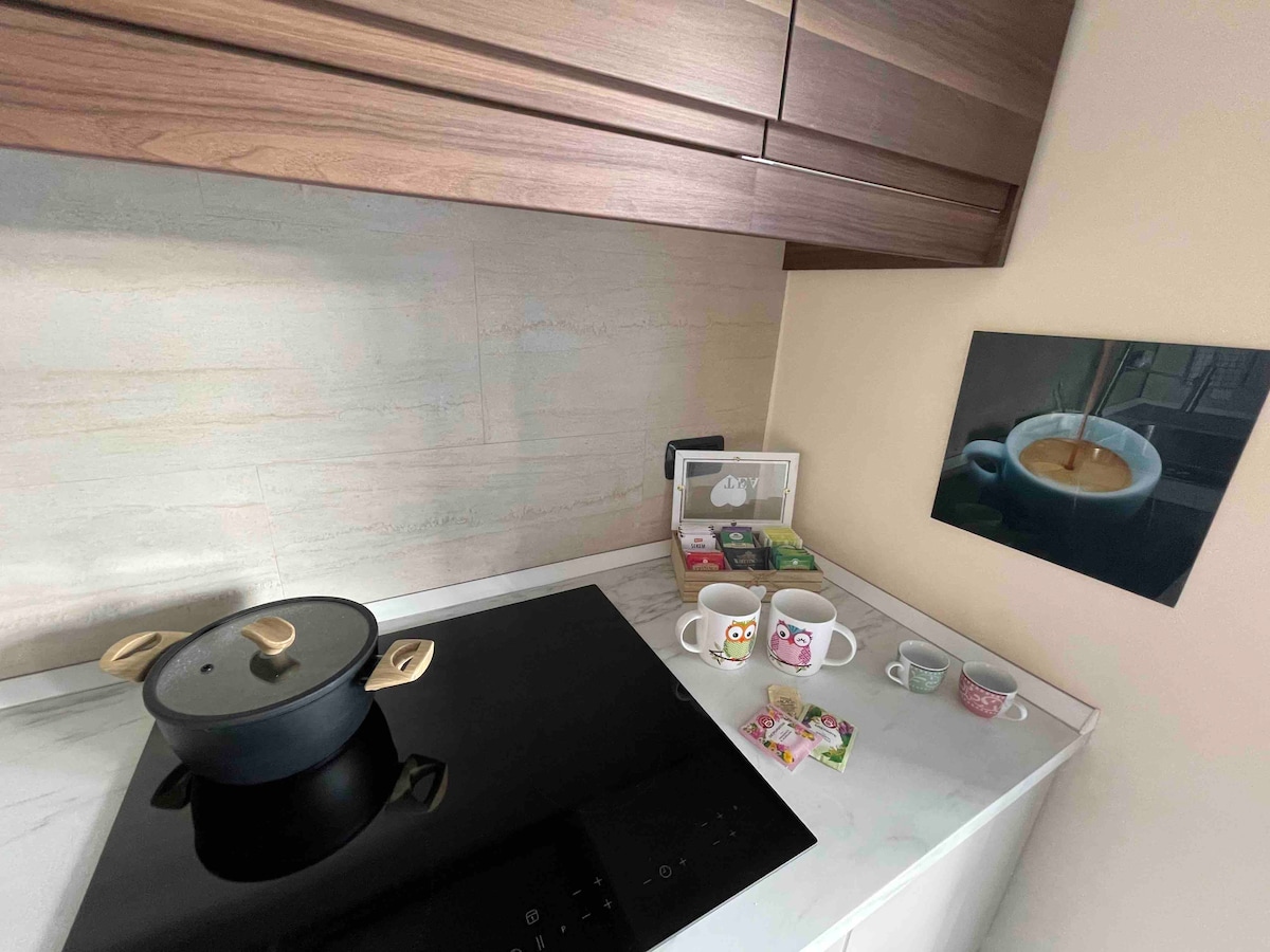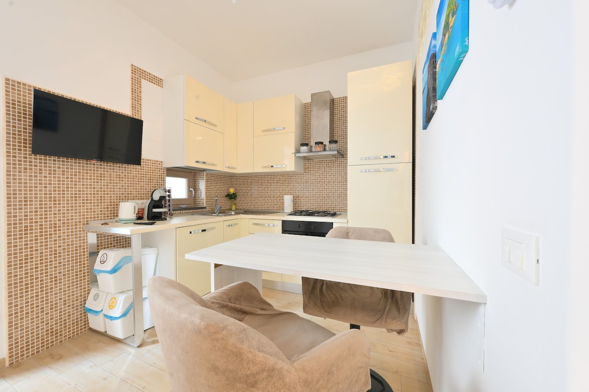 La casa de 40 m2 de nueva construcción se encuentra en Marina Corricella, una zona peatonal de fácil acceso, a 7 metros del mar. Para llegar a la casa, hay 2 juegos de escaleras con un total de 30 escalones. Desde la pequeña terraza se puede ver la llegada de los barcos de pescadores. Muy cerca hay restaurantes, bares, heladerías y tiendas de artesanía local. Se puede llegar a la playa de Chiaia a pie (20 minutos) o en taxi. En primavera/verano, el transporte de pasajeros en hidroala desde Sorrento a Procida está activo.