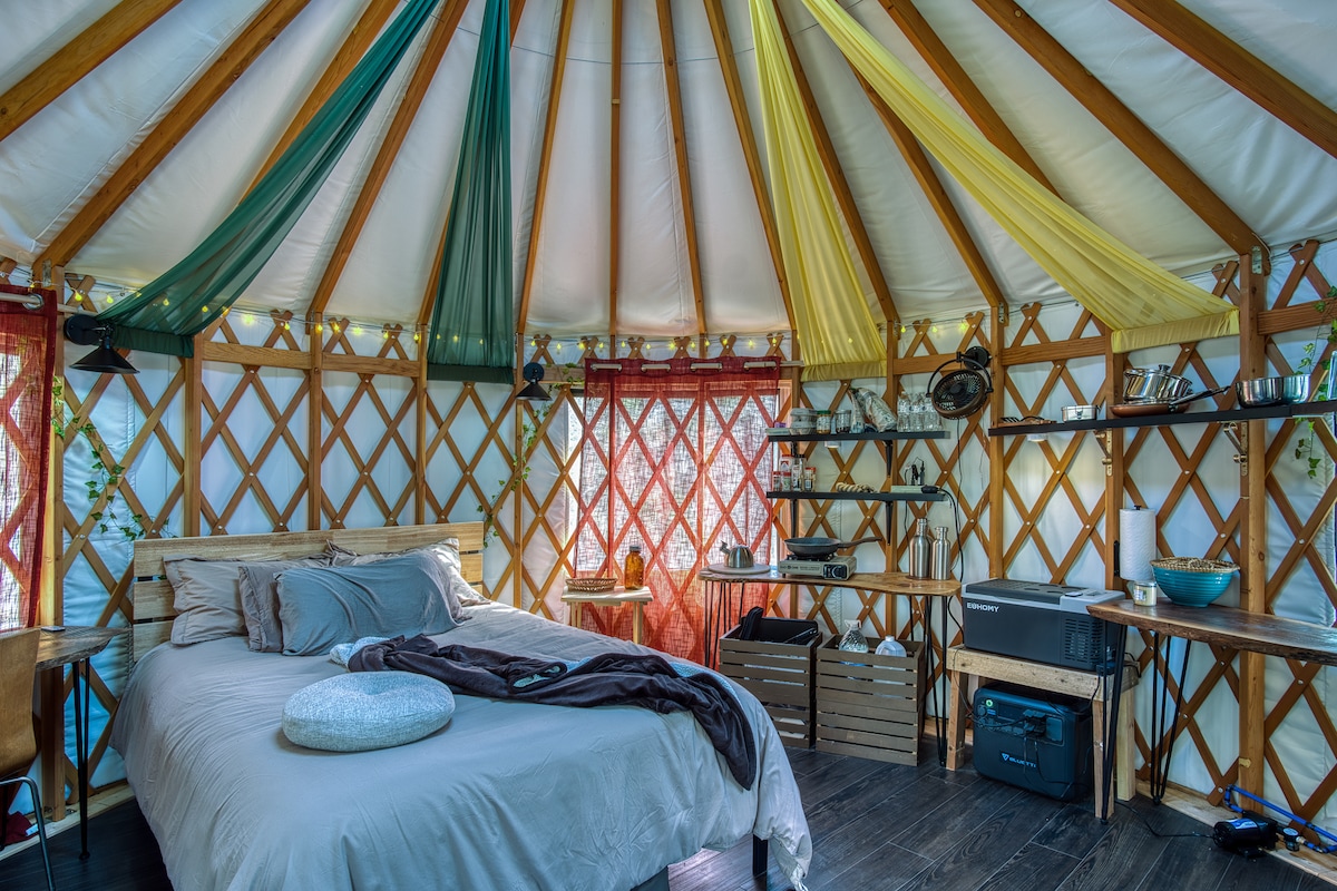 Vuelve a conectar con la naturaleza con esta escapada inolvidable. Nuestras yurtas son el punto de encuentro entre el lujo y la naturaleza. Estas acogedoras moradas son perfectas para parejas o familias pequeñas y cuentan con una cómoda cama tamaño queen. Nuestras yurtas vienen equipadas con un moderno baño a solo un salto de distancia. Tendrás acceso a todas las comodidades, como duchas calientes, inodoros con descarga y todo lo que necesitas para mantenerte fresco y limpio durante tu estancia.