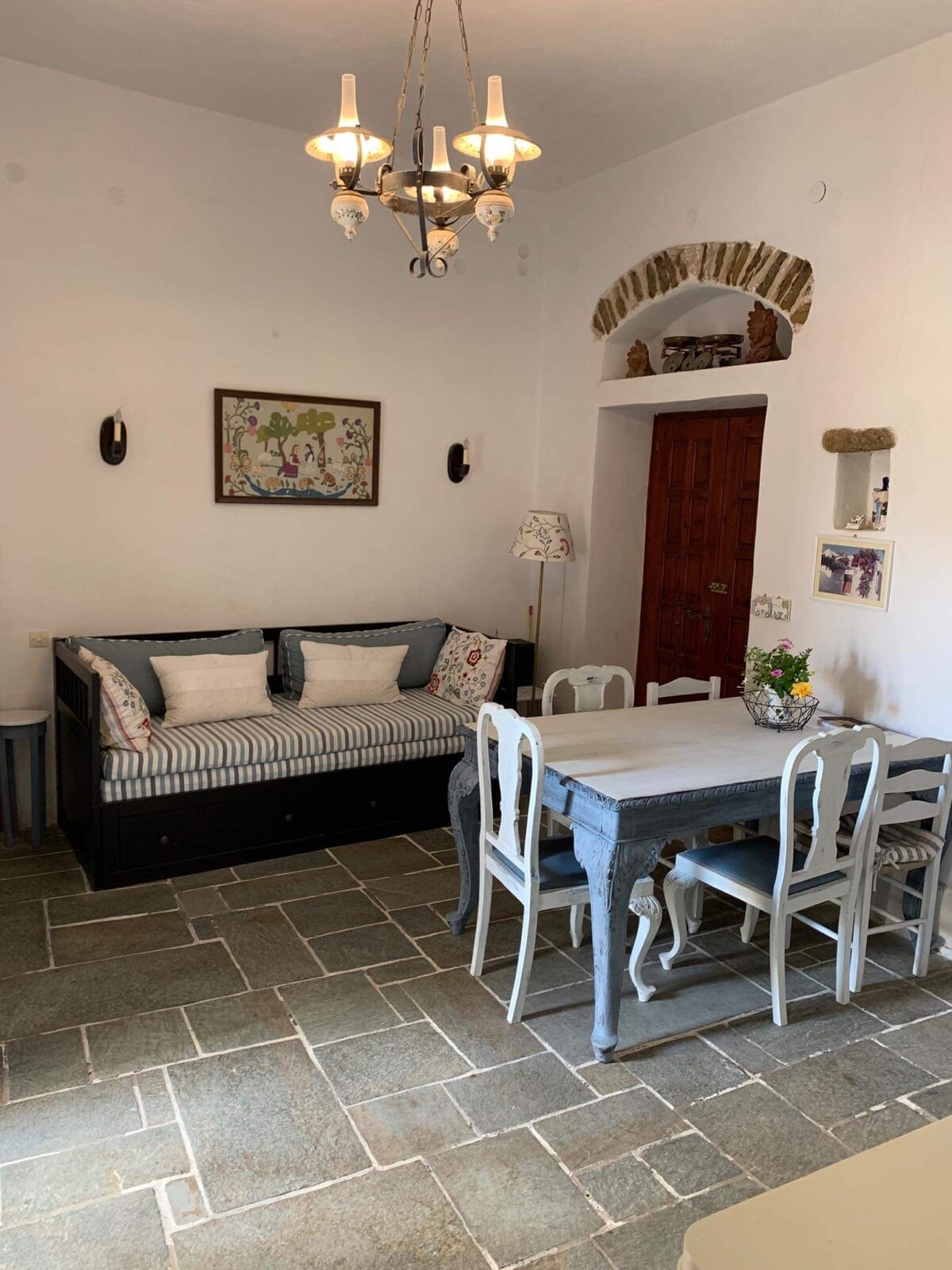 A traditionally renovated, neoclassical building, situated in a traditional square in the Cycladic village of Marpissa. Enjoy your holiday living in a quiet neighborhood, wander around whitewashed alleys, visit traditional tavernas, and folklore museums. Conveniently located in the center of the village and within walking distance from the market street and the crystal clear water beaches of Piso Livadi and Logaras.