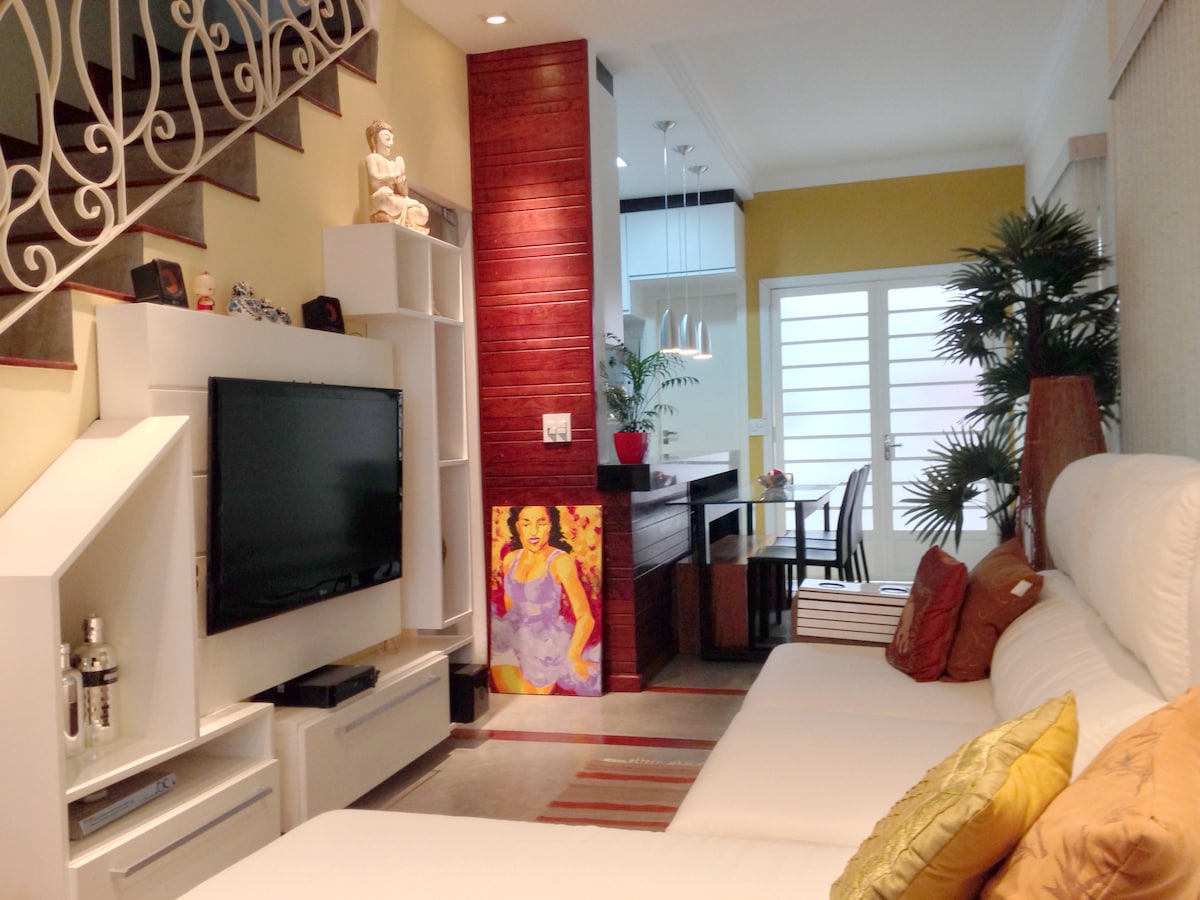 Suite completa e independiente para 2 personas, con todo lo necesario para disfrutar de una estancia romántica y acogedora, a 5 minutos a pie de Praia da Enseada/Guarujá (Prox Morro do Maluf) A continuación se muestra una descripción detallada de nuestros servicios, que incluyen un lugar de estacionamiento y acceso a la piscina, ambos gratuitos, así como una zona gourmet con costos asequibles y compatibles con el valor de la tarifa diaria. FESTIVOS: MÍN. 2 DÍAS NAVIDAD/AÑO NUEVO/CARNAVAL: MÍN. 3-4 DÍAS